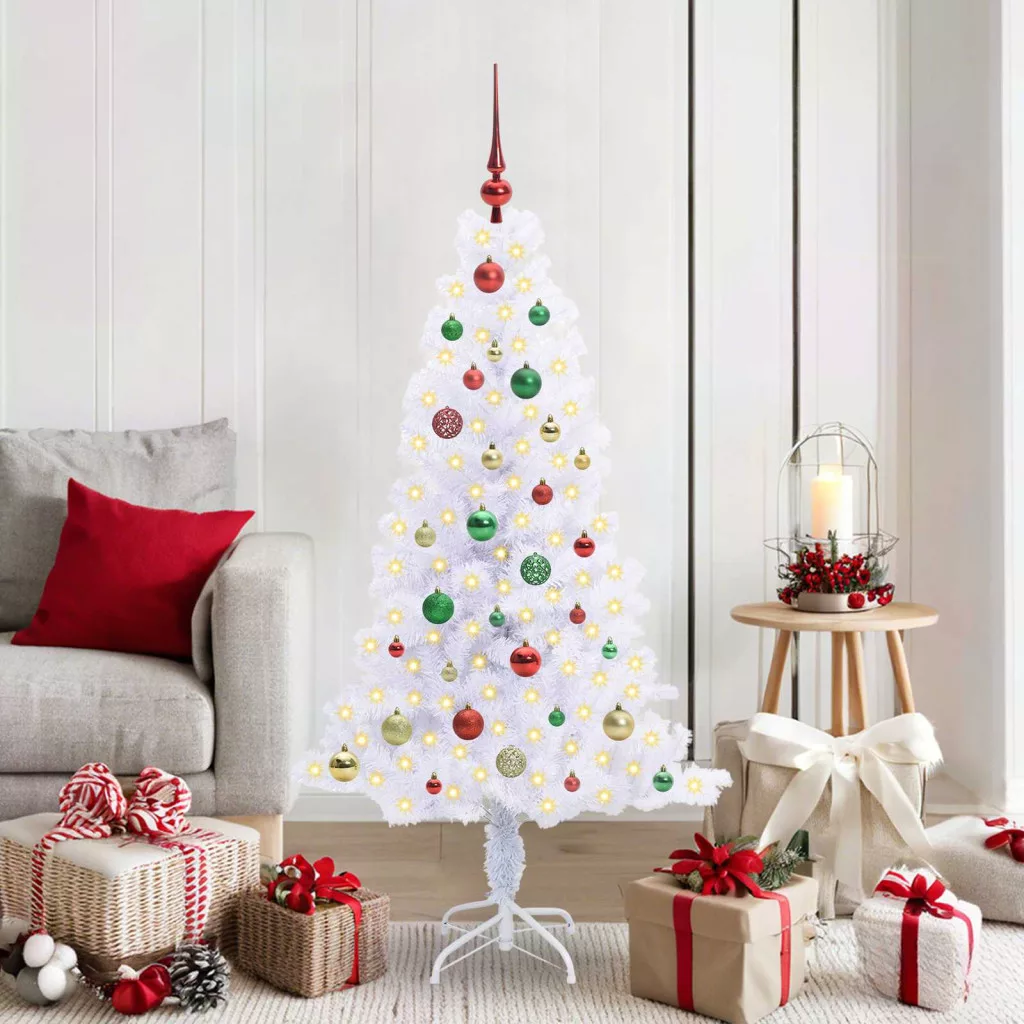 - Stílusos modern dizájn: A kúpos forma és modern tervezési elemek stílusos kiegészítővé teszik ezt a fát otthonodban vagy védett kültéri helyeken. Elegáns megjelenése simán illeszkedik minimalista vagy kortárs berendezésekhez, fokozva bármely szezonális dekoráció vizuális vonzerejét.
