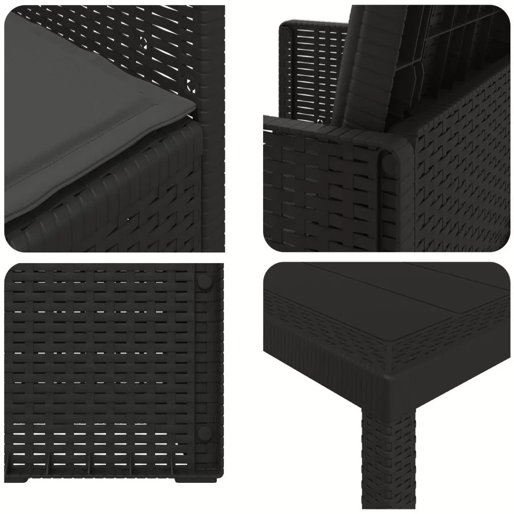 - Stabil szerkezet: Az asztal és a székek polipropilénből és műanyagból készültek, így stabil és megbízható a mindennapi kültéri használatra. Időjárásálló és UV-álló, amitől a garnitúra jól bírja az időjárás viszontagságait.