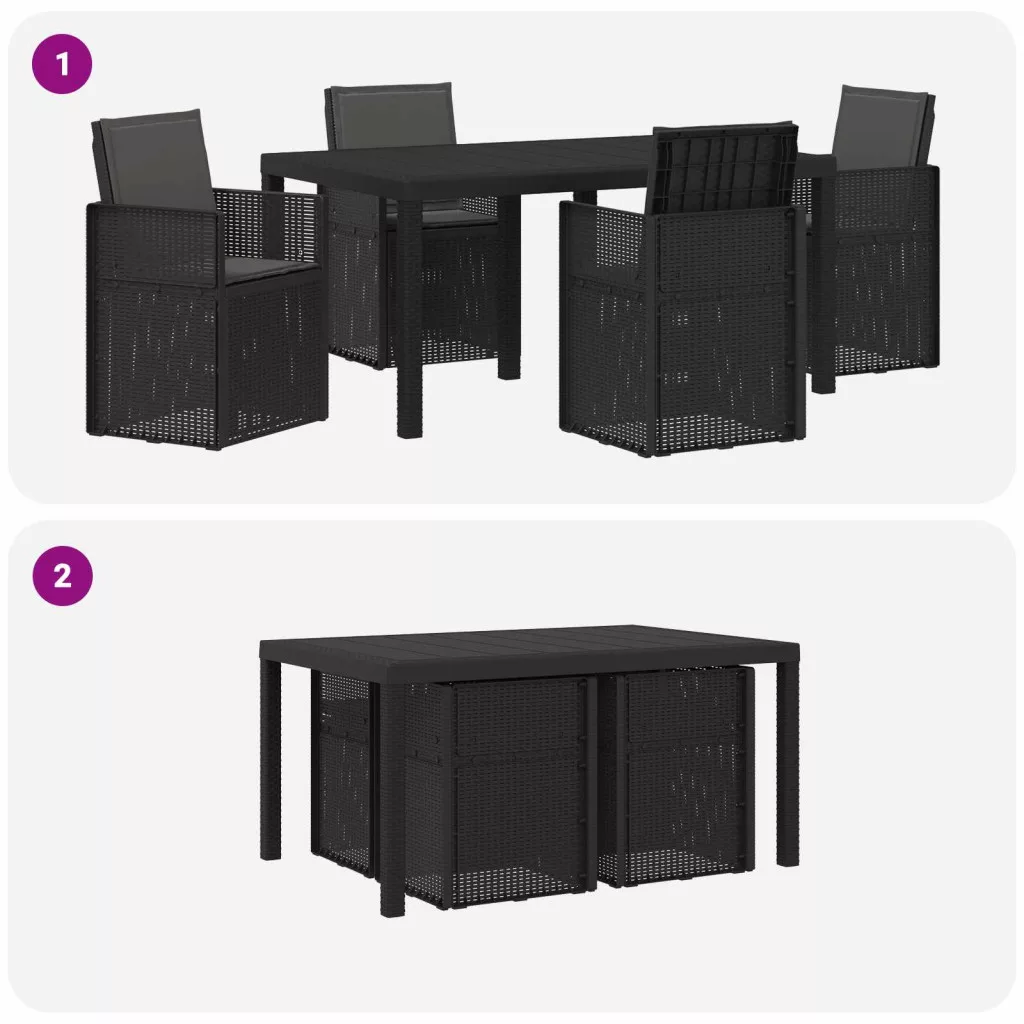 - Visszahajtható dizájn: A lehajtható háttámla lehetővé teszi, hogy a székek könnyen behúzhatók legyenek az asztal alá, így helyet spórolhatsz. Ez a praktikus megoldás segít rendben tartani a kültéri területeket, amikor épp nem használod.