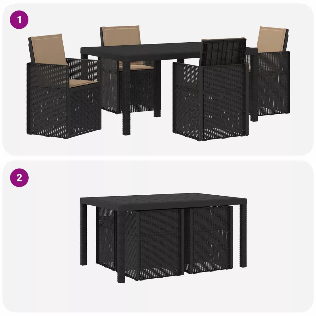- Visszahajtható dizájn: A lehajtható háttámla lehetővé teszi, hogy a székek könnyen behúzhatók legyenek az asztal alá, így helyet spórolhatsz. Ez a praktikus megoldás segít rendben tartani a kültéri területeket, amikor épp nem használod.
