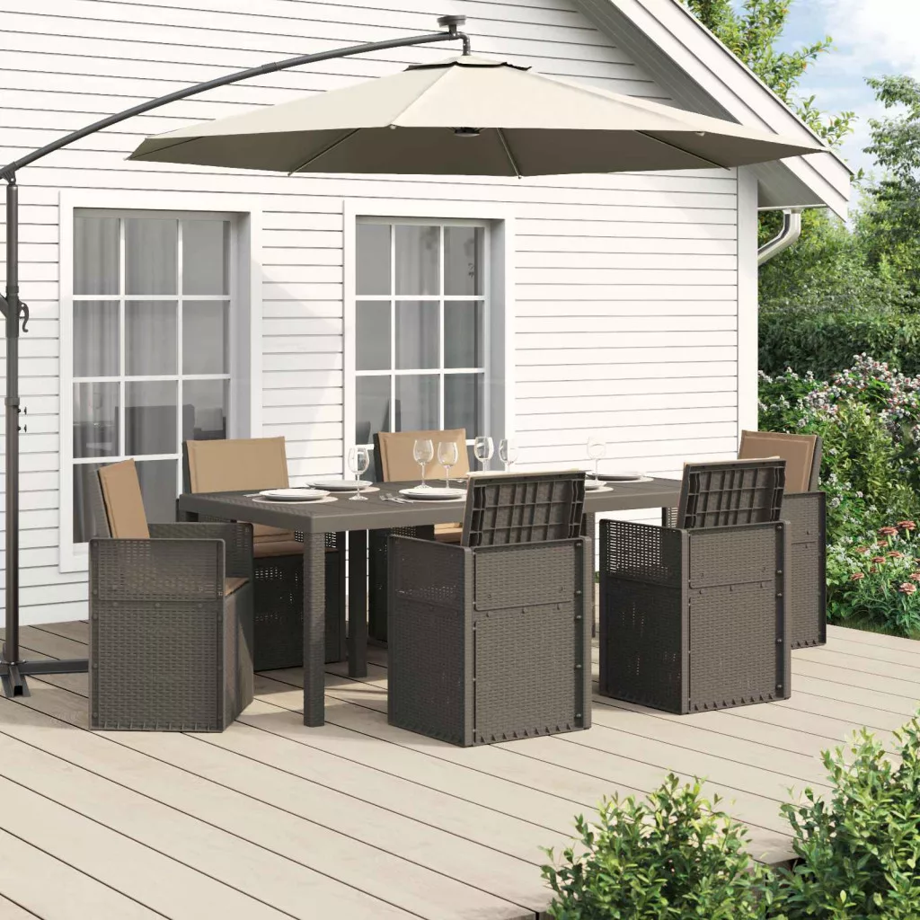 - Sokoldalú használat: Ez az étkezőgarnitúra bármilyen kültéri beállításhoz passzol, tökéletes teraszokon, kertekben és udvarokon minimalist zár-inspírozott dizájnnal a különböző alkalmakkor.