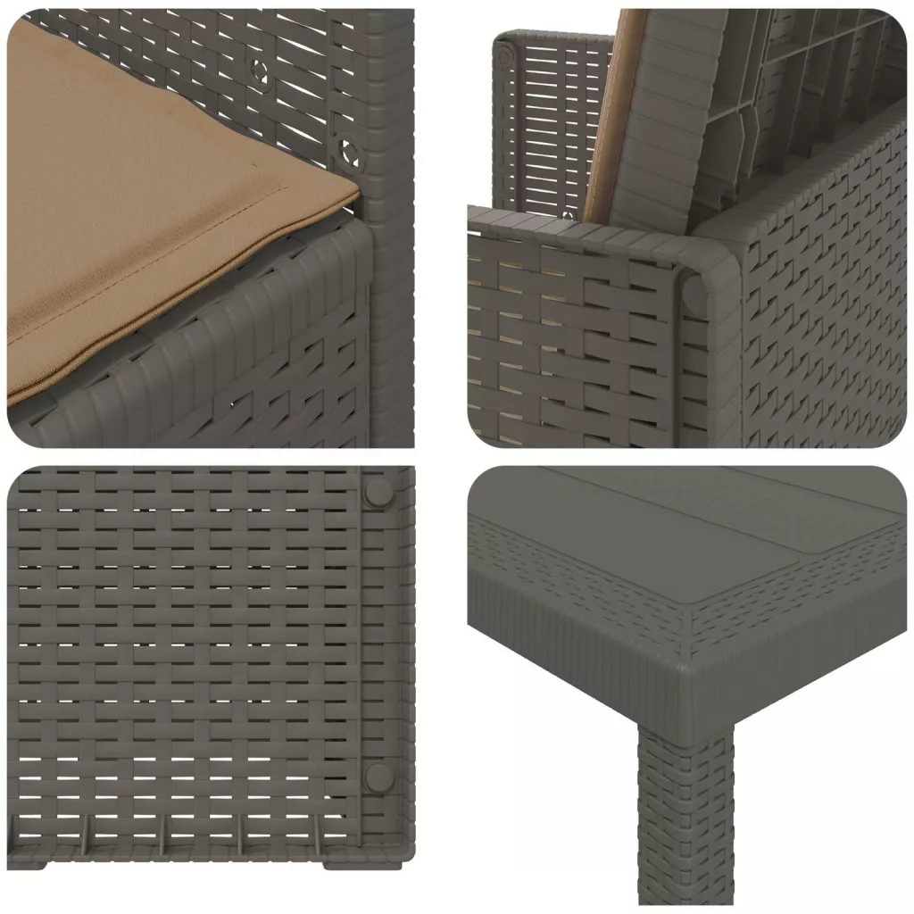 - Stabil szerkezet: Az asztal és a székek polipropilénből és műanyagból készültek, így stabil és megbízható a mindennapi kültéri használatra. Időjárásálló és UV-álló, amitől a garnitúra jól bírja az időjárás viszontagságait.
