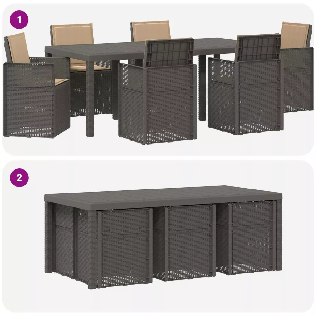 - Visszahajtható dizájn: A lehajtható háttámla lehetővé teszi, hogy a székek könnyen behúzhatók legyenek az asztal alá, így helyet spórolhatsz. Ez a praktikus megoldás segít rendben tartani a kültéri területeket, amikor épp nem használod.