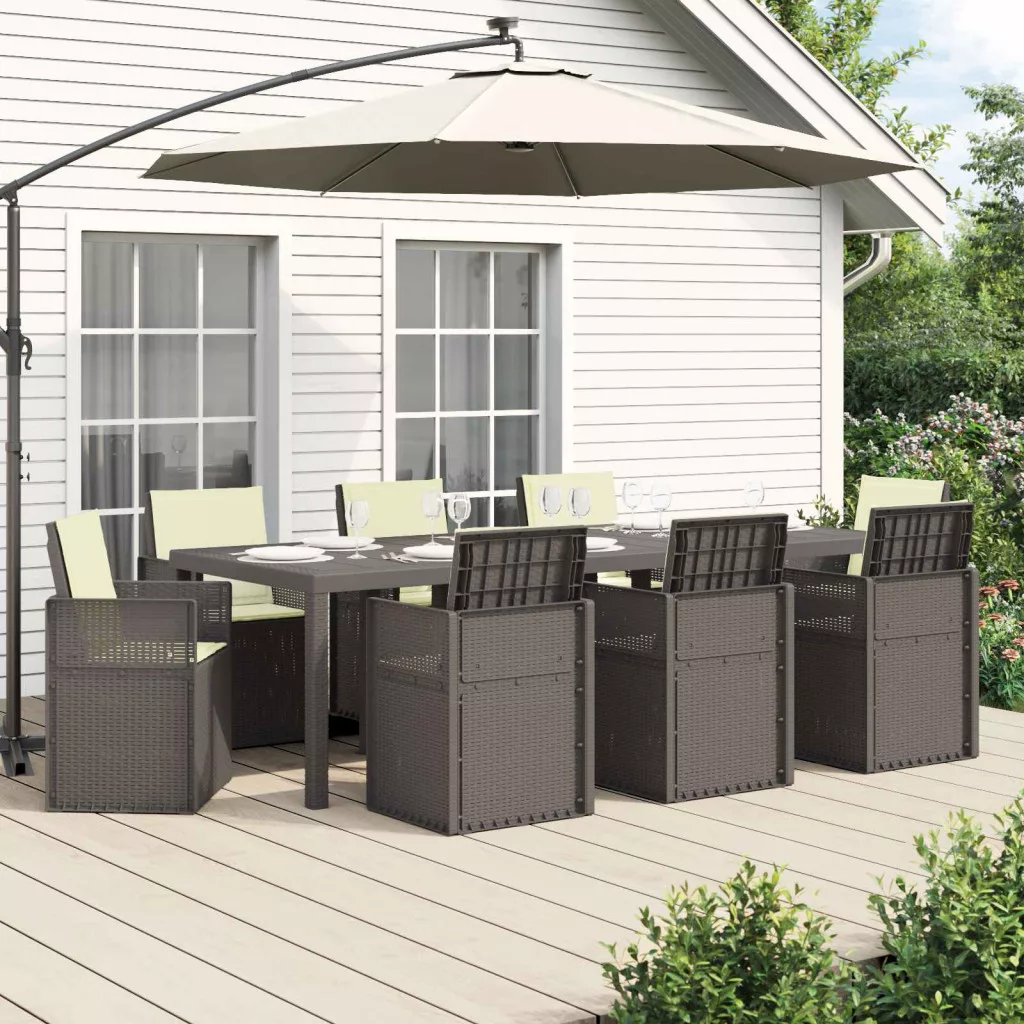 - Stabil szerkezet: Az asztal és a székek polipropilénből és műanyagból készültek, így stabil és megbízható a mindennapi kültéri használatra. Időjárásálló és UV-álló, amitől a garnitúra jól bírja az időjárás viszontagságait.
