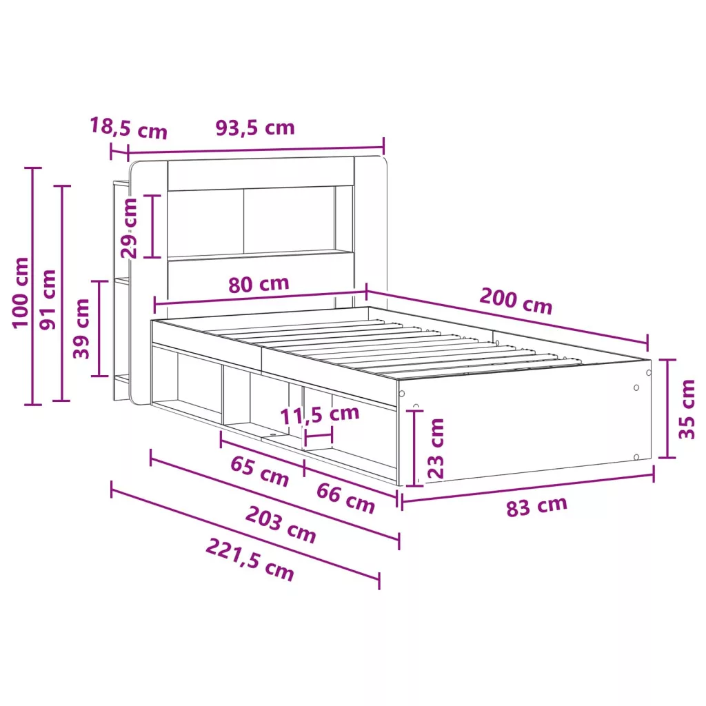 - 1 x Ágykeret: 83 x 203 x 35 cm (H x Sz x M)