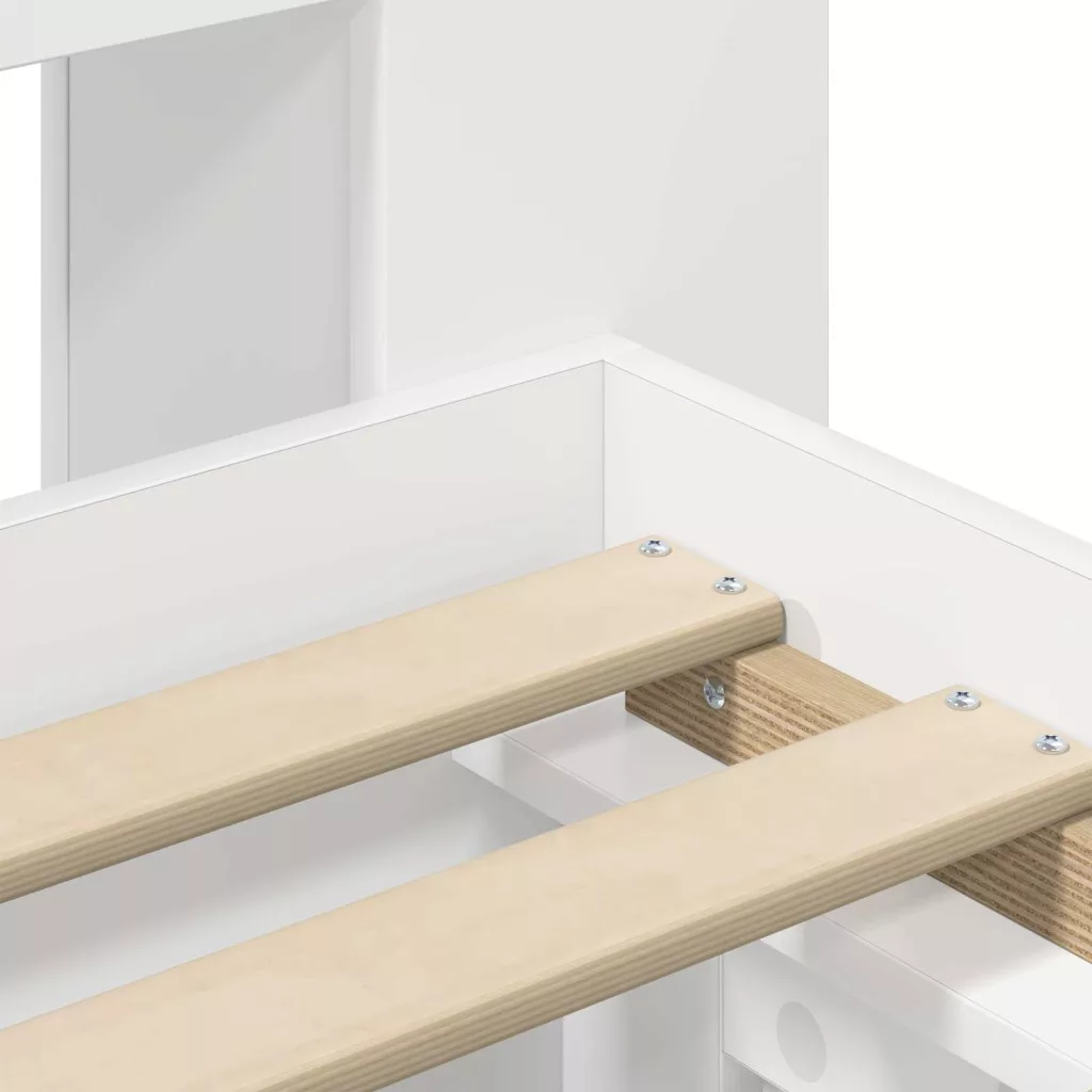 - Bőséges tárolási lehetőségek: Ez az ágykeret tágas tárolóhelyeket kínál, ahol könnyedén elhelyezheted a tartalék ágyneműt, szezonális ruhákat vagy egyéb hálószobai kiegészítőket. A dizájnja segít, hogy minden cuccod rejtve, de könnyen hozzáférhetően maradjon, így rendezett és tiszta teret varázsolhatsz.