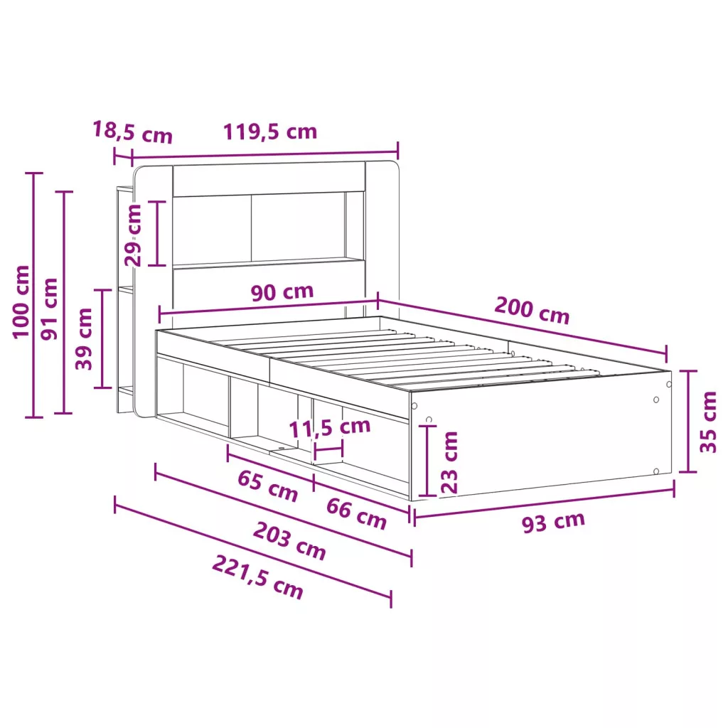 - 1 db Ágykeret: 93 x 203 x 35 cm (H x Sz x M)