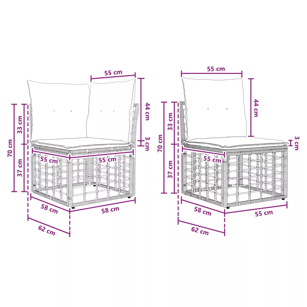 - 4 db Középső kanapé: 55 x 62 x 70 cm (H x Sz x M)