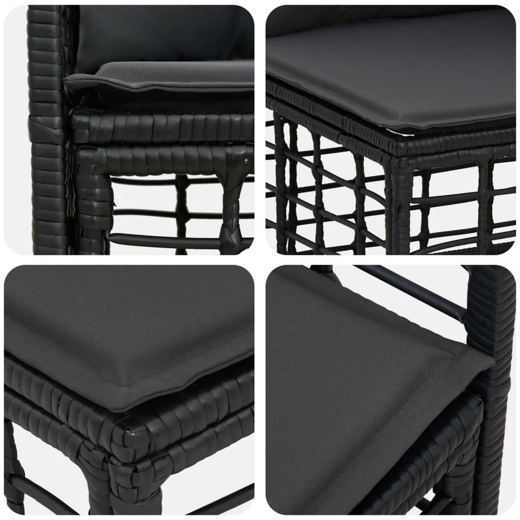 - Tartós polirattan váz: Az átlagon felüli robusztusság és tartósság jellemzi a kültéri viszonyoknak ellenálló váznak, a stabilabb élmény és több évnyi viselhetőség érdekében.