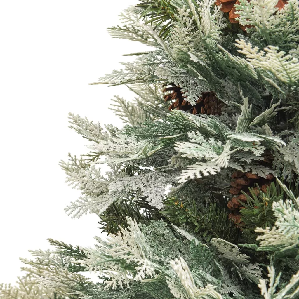 Ez a gyönyörű karácsonyfa PVC-ből és PE-ből készült ágakkal rendelkezik. A mellékelt acélállvány optimális stabilitást nyújt a fának. Az energiahatékony LED-világításnak köszönhetően csodálatos fényeket és otthonos ünnepi hangulatot teremt. Az ágak között elhelyezett tobozokkal díszített karácsonyfa bármelyik otthont képes életre kelteni. A fa ágai egy csuklópántrendszerrel vannak a főoszlophoz erősítve. A csuklópántoknak köszönhetően az ágak automatikusan megtalálják a megfelelő pozíciót.