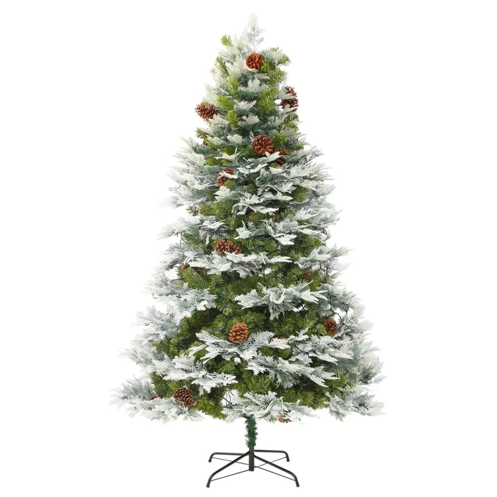 Ez a gyönyörű karácsonyfa PVC-ből és PE-ből készült ágakkal rendelkezik. A mellékelt acélállvány optimális stabilitást nyújt a fának. Az energiahatékony LED-világításnak köszönhetően csodálatos fényeket és otthonos ünnepi hangulatot teremt. Az ágak között elhelyezett tobozokkal díszített karácsonyfa bármelyik otthont képes életre kelteni. A fa ágai egy csuklópántrendszerrel vannak a főoszlophoz erősítve. A csuklópántoknak köszönhetően az ágak automatikusan megtalálják a megfelelő pozíciót.