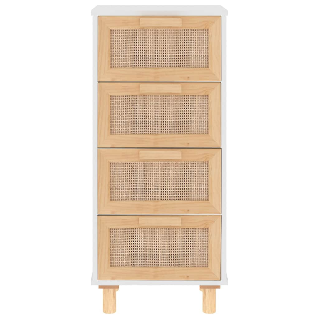 - Bőséges tárolóhely: A 4 fiókkal felszerelt szekrény bőséges tárolóhelyet kínál alapvető holmijai kézközelben történő rendezett tárolásához. Ezenkívül a fiókban található természetes rattan szövésű dizájn extra szépséggel ruházza fel.