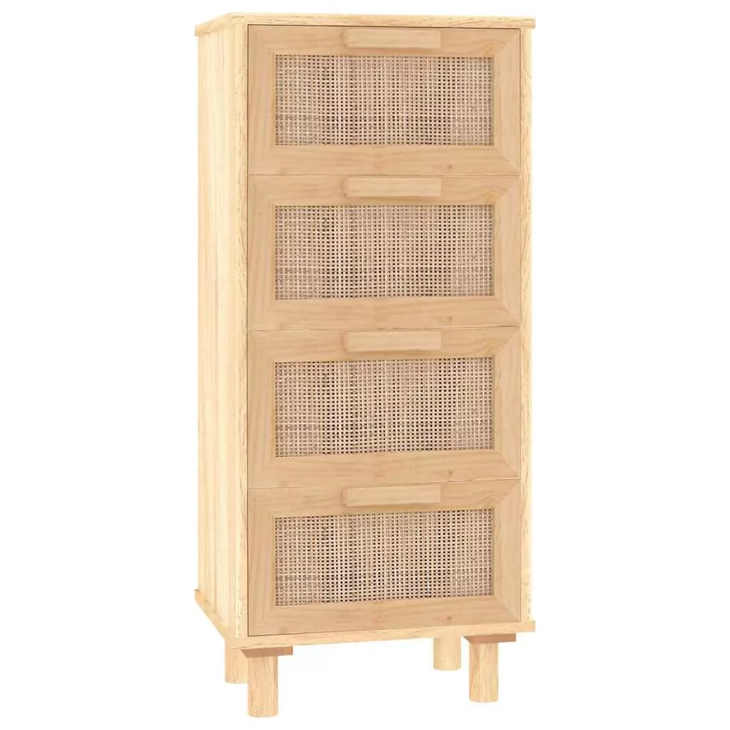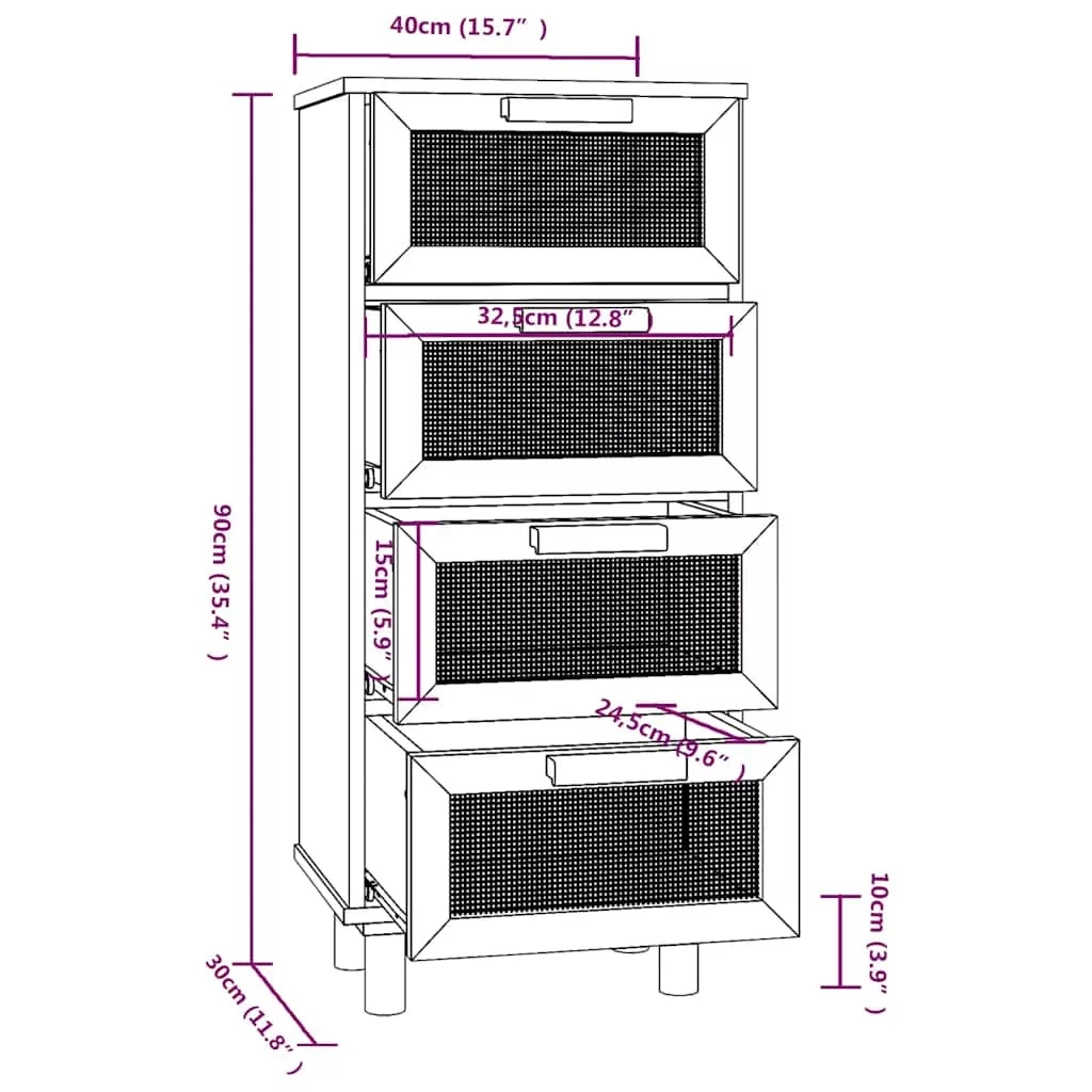 - Bőséges tárolóhely: A 4 fiókkal felszerelt szekrény bőséges tárolóhelyet kínál alapvető holmijai kézközelben történő rendezett tárolásához. Ezenkívül a fiókban található természetes rattan szövésű dizájn extra szépséggel ruházza fel.