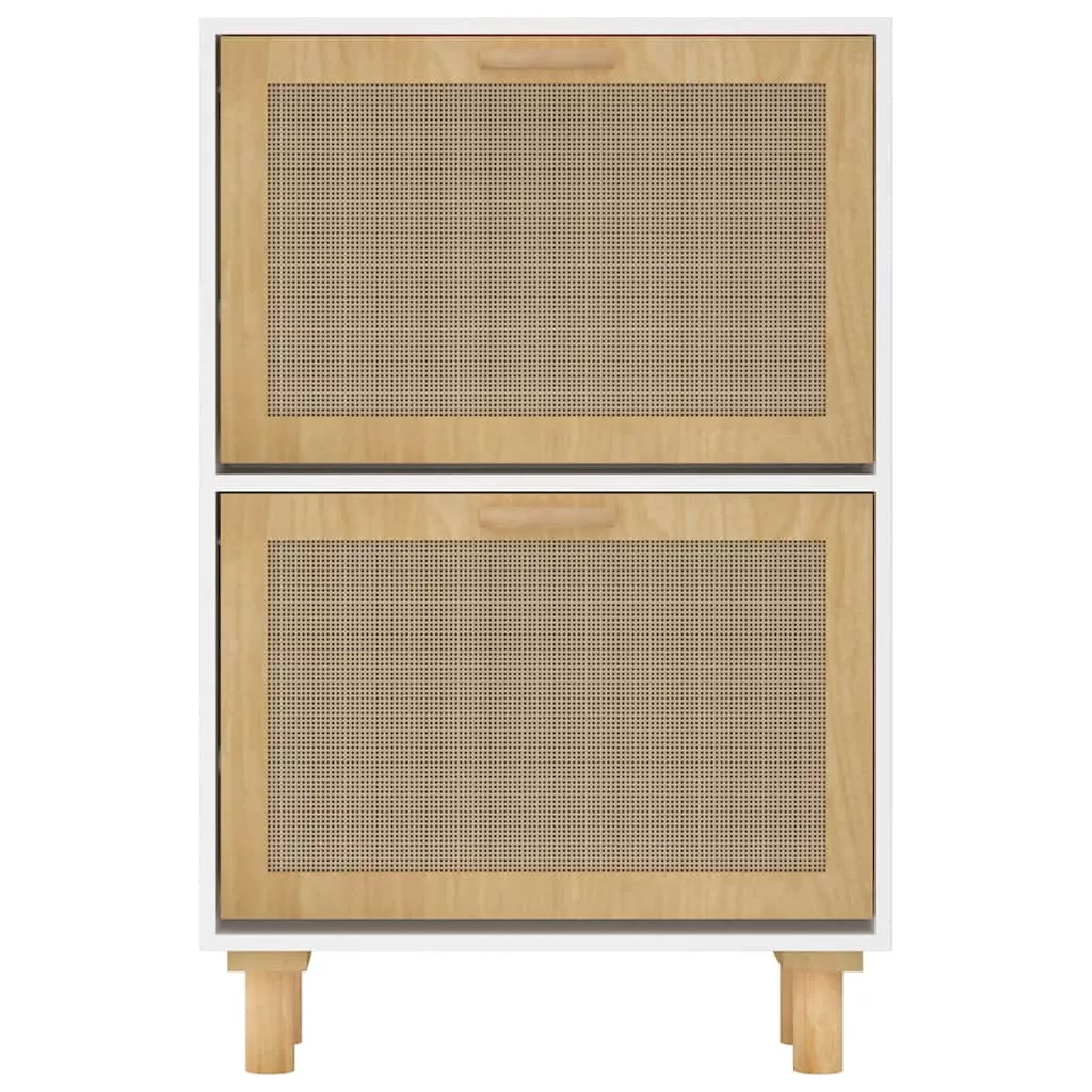 vidaXL fehér szerelt fa és természetes rattan cipőszekrény 52x25x80 cm