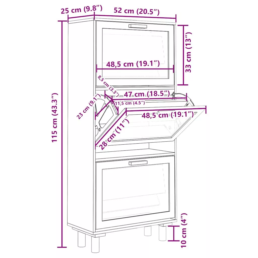 - Lehúzható fiókos kialakítás: A lehúzható fiókos kialakításnak köszönhetően ez a cipőtároló szekrény könnyen nyitható és zárható.