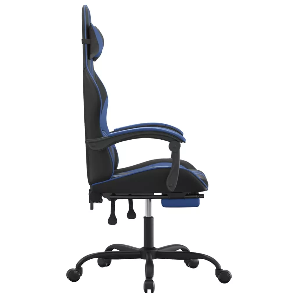 vidaXL fekete és kék műbőr forgó játékszék lábtartóval