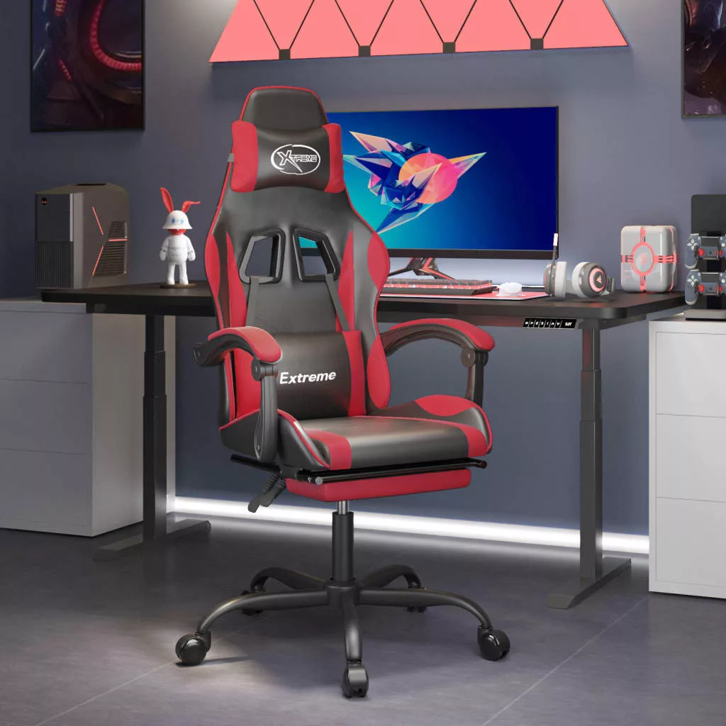 vidaXL fekete és piros műbőr forgó játékszék lábtartóval
