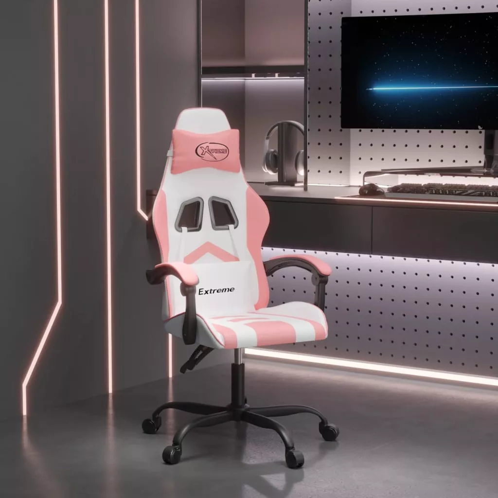 vidaXL fehér és rózsaszín műbőr forgó játékszék