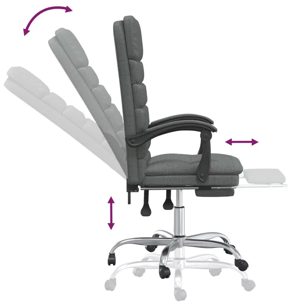 - Állítható háttámla és magasság: A fotel dönthető, így saját igénye szerint állíthatja be a háttámlát és a lábtartót. A kar segítségével tetszés szerint állíthatja be az ülés magasságát.