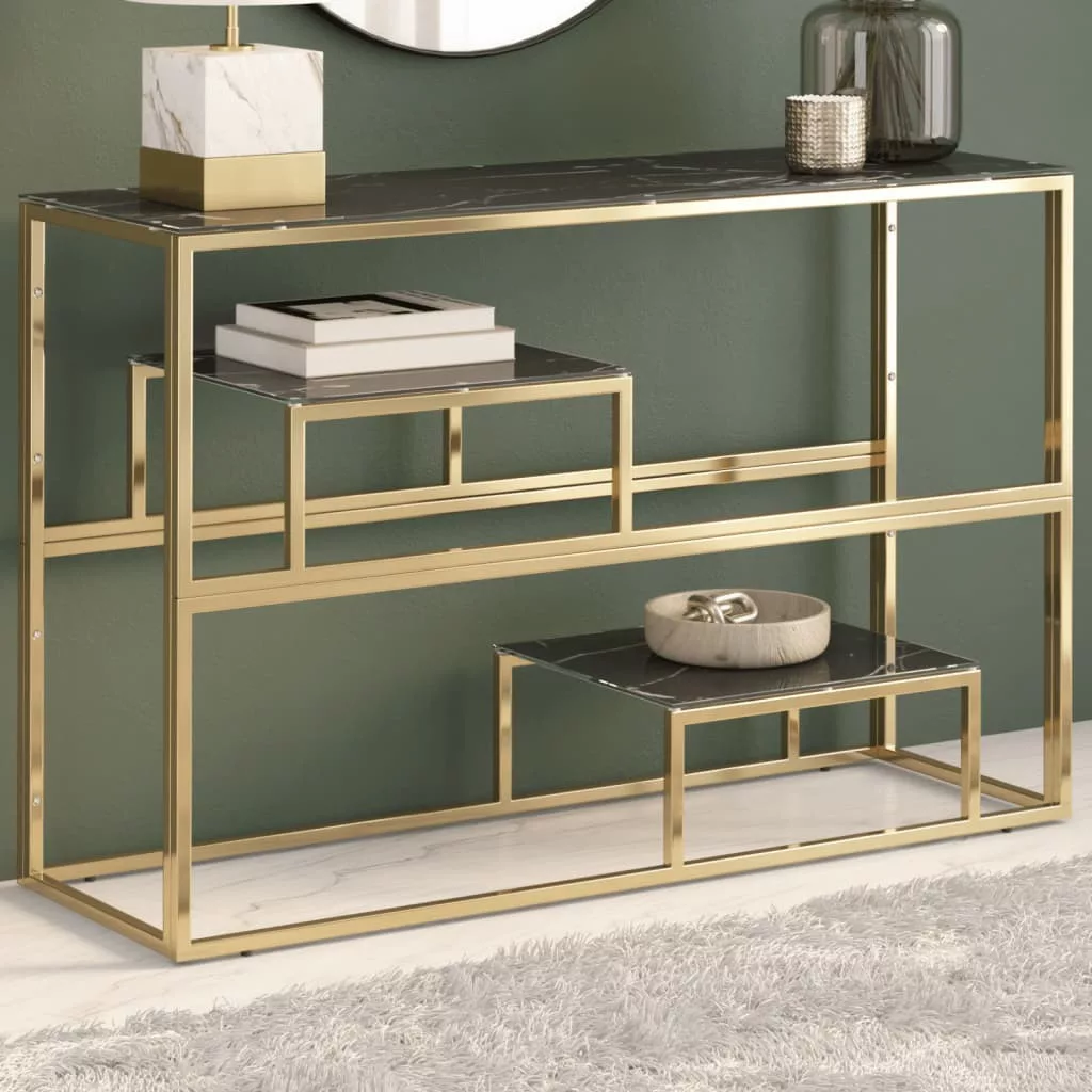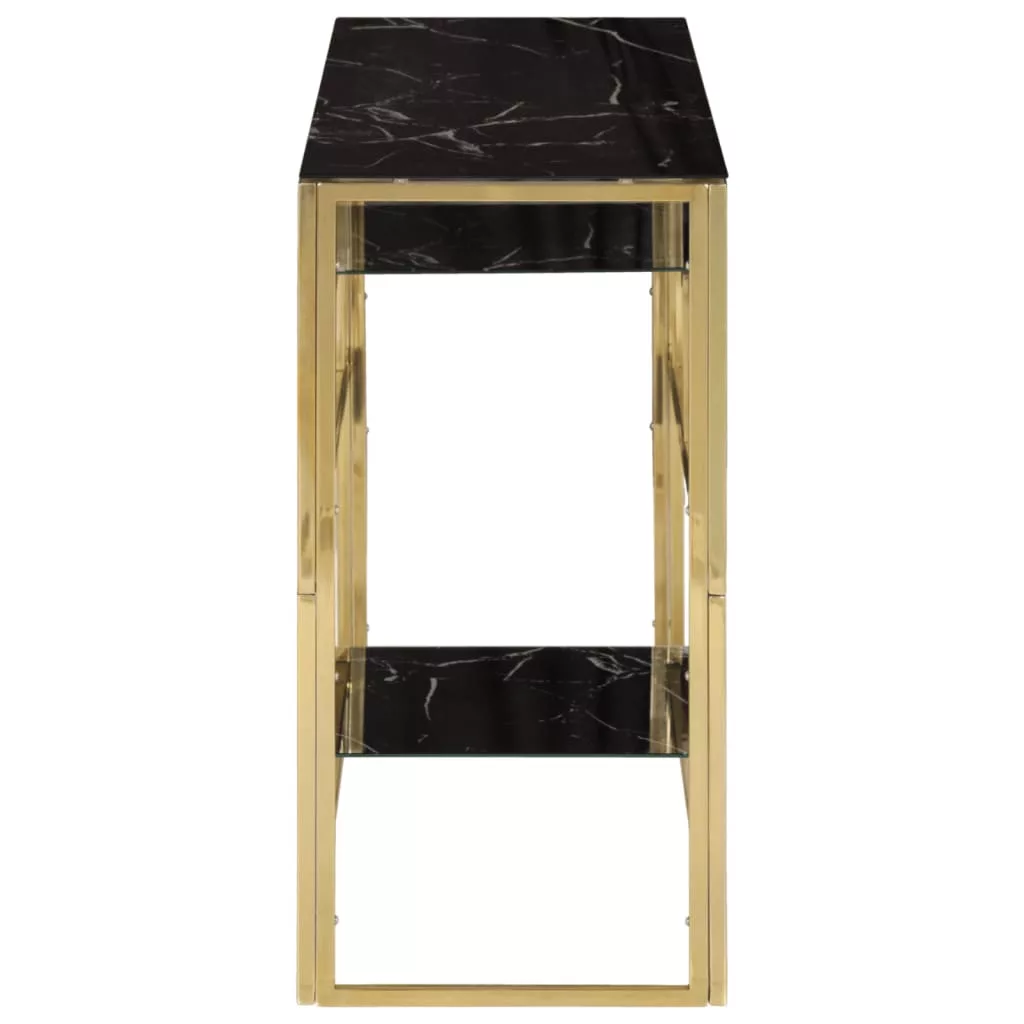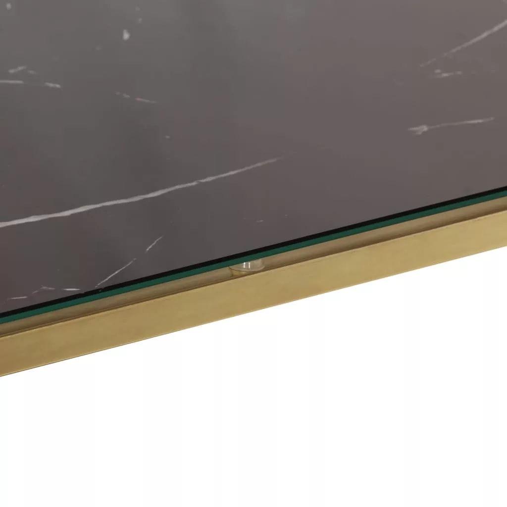 - Üveg asztallap fekete márvány felülettel: A kanapéasztal teteje biztonságos és bőséges felületet biztosít vázák, cserepes növények vagy egyéb dísztárgyak számára.