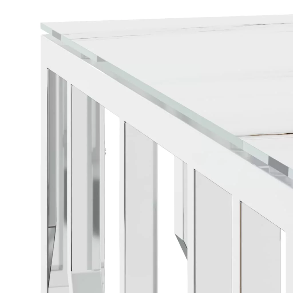 - Üveg asztallap: Ez a nappali asztal edzett üveglapot tartalmaz, amely márvány bevonatot kapott, hogy az asztal szépségét növelje. Az asztallap látható és bőséges felületet biztosít a rágcsálnivalók, italok, vázák, gyümölcstálak vagy más dekorációs tárgyak elhelyezésére.