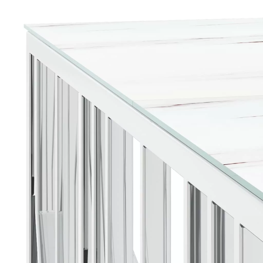 - Üveg asztallap: Ez a nappali asztal edzett üveglapot tartalmaz, amely márvány bevonatot kapott, hogy az asztal szépségét növelje. Az asztallap látható és bőséges felületet biztosít a rágcsálnivalók, italok, vázák, gyümölcstálak vagy más dekorációs tárgyak elhelyezésére.