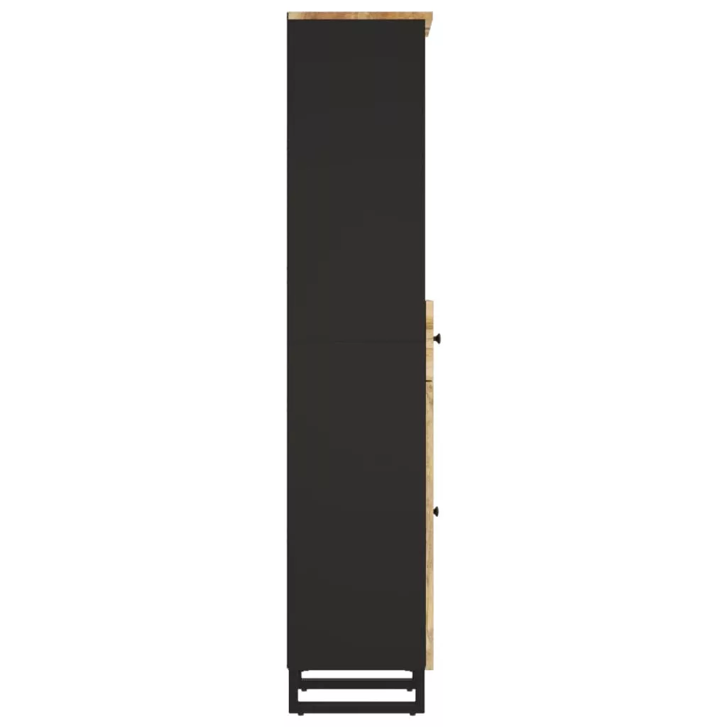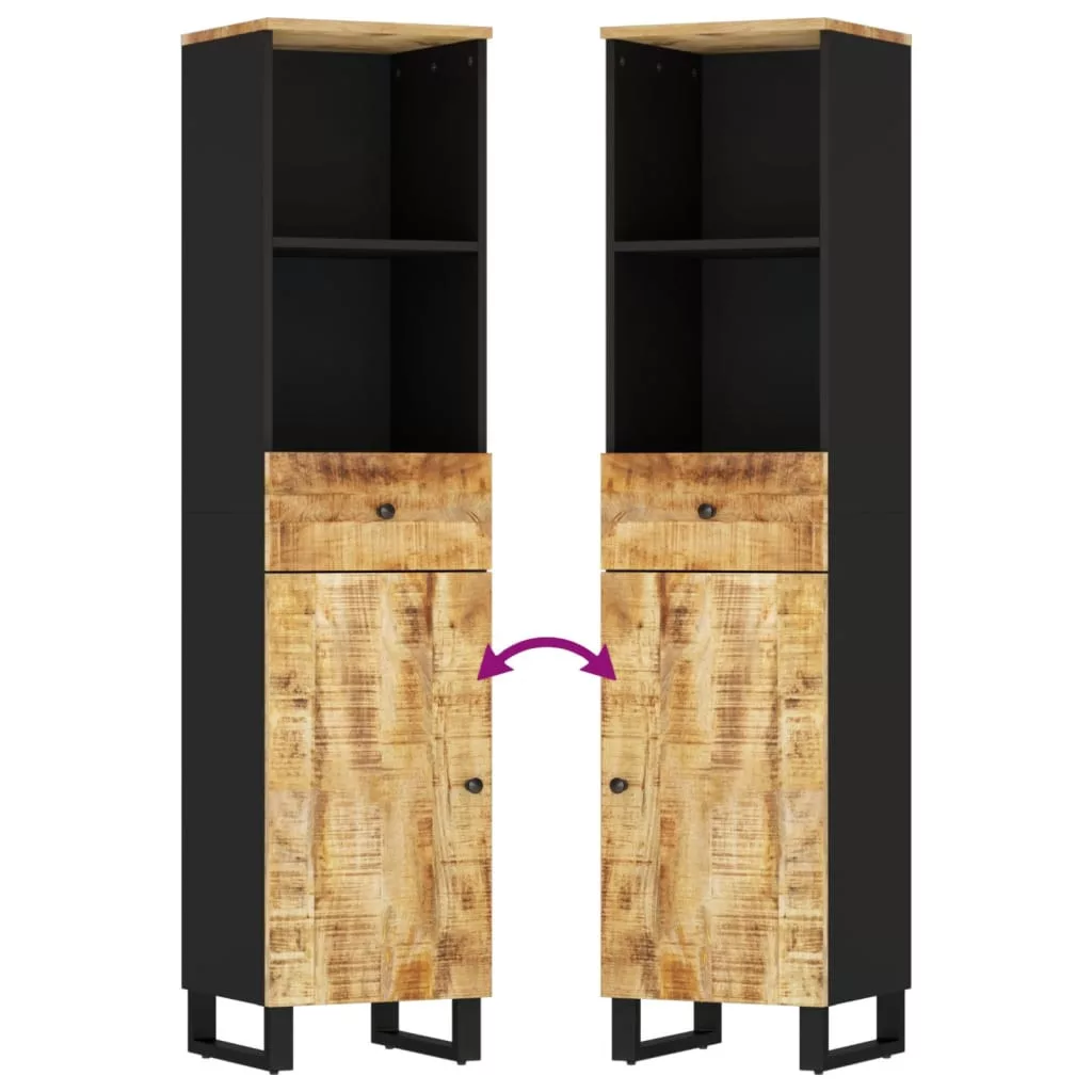 - Tömör mangófa: Ez a fürdőszobaszekrény tömör mangófából és szerelt fából készült. A tömör mangófa egy erős, trópusi keményfa, melyből strapabíró bútorok készíthetőek. A fa gyönyörű erezetének köszönhetően minden darab kissé különbözik a többitől.