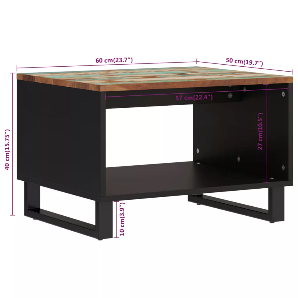 - Anyaga: tömör újrahasznosított fa vegyes színű felülettel, vas