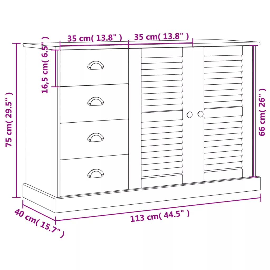 - Tágas és funkcionális tároló: A fiókokkal és tárolórekeszekkel rendelkező tálalószekrény bőséges helyet kínál a dolgai rendezett tárolásához. Ráadásul többféleképpen is használható. A tálalószekrény büféasztalként, konyhai tálalóként vagy a nappali, illetve előszobai szekrényként is használható.