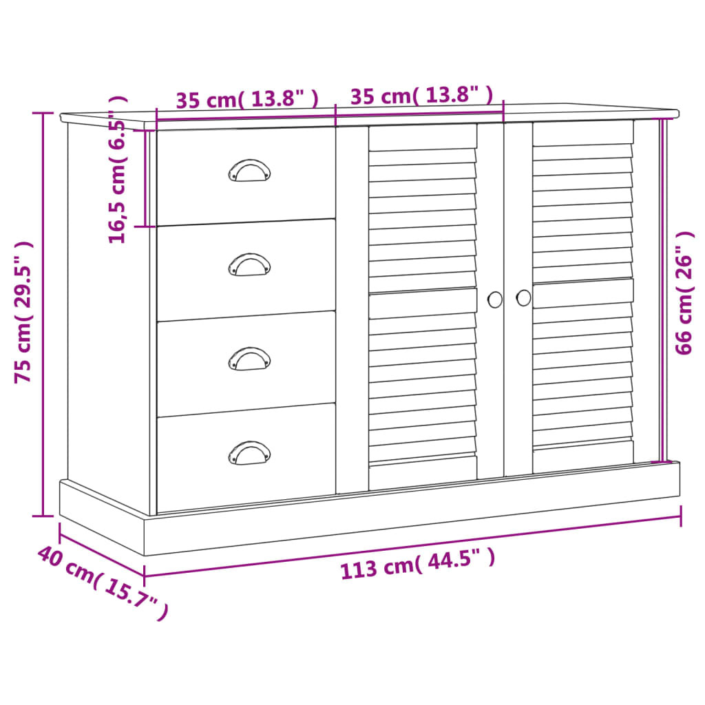 - Tágas és funkcionális tároló: A fiókokkal és tárolórekeszekkel rendelkező tálalószekrény bőséges helyet kínál a dolgai rendezett tárolásához. Ráadásul többféleképpen is használható. A tálalószekrény büféasztalként, konyhai tálalóként vagy a nappali, illetve előszobai szekrényként is használható.