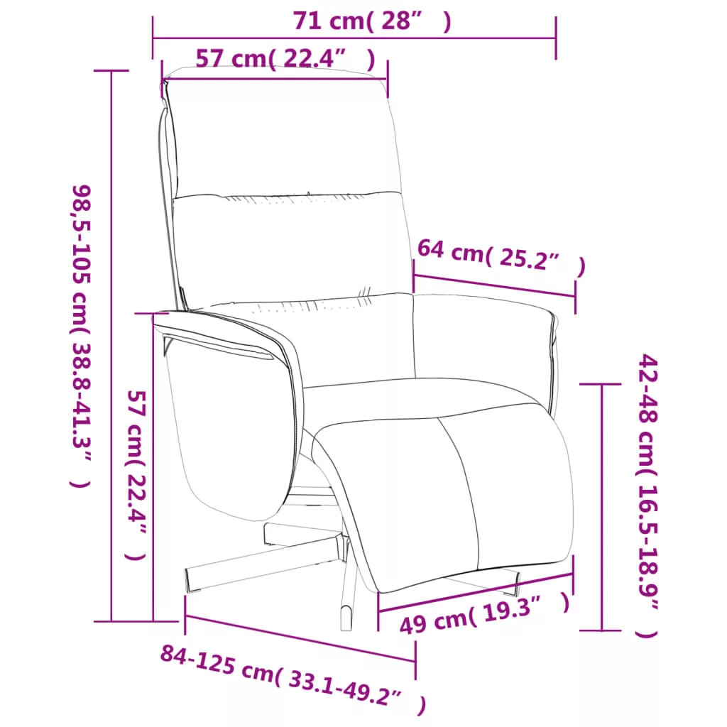 - Kézzel dönthető: Ezt a fotel dönthető, így a háttámlát és a lábtámlát saját kényelme szerint állíthatja be. A háttámla 105 és 125 fok között dönthető.