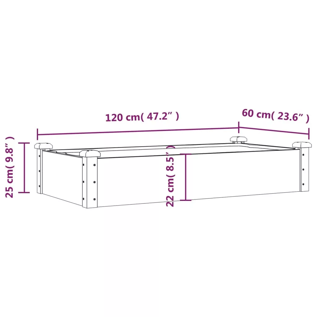 - Tömör fenyőfa: A magaságyás tömör fenyőfából készült. A tömör fenyőfa egy gyönyörű, természetes anyag. A fenyőfa nem szárad ki és nem vetemedik meg, ha nedvesség éri.
