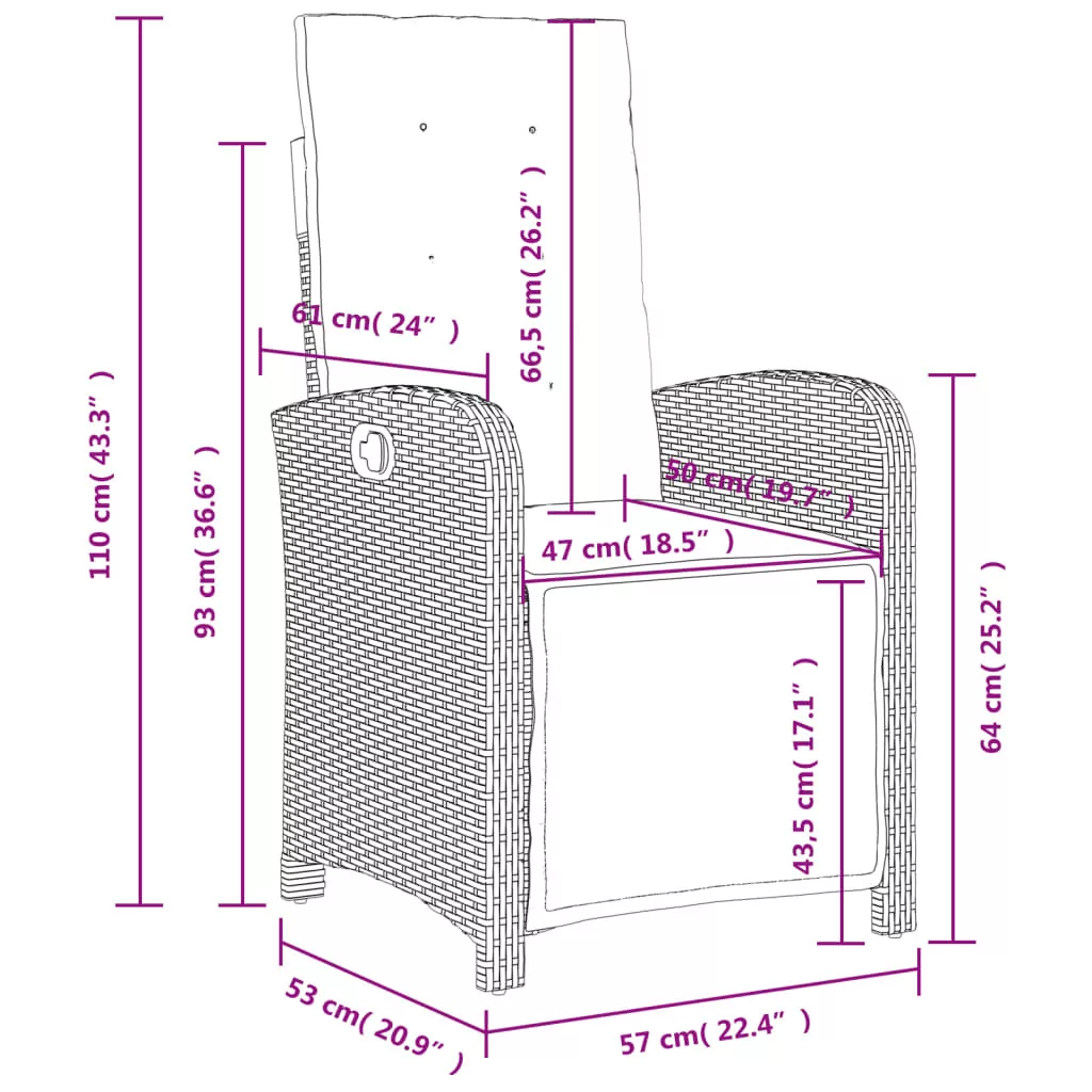 - Ülőmérete: 57 x 61 x 93 cm (Szé x Mé x Ma)