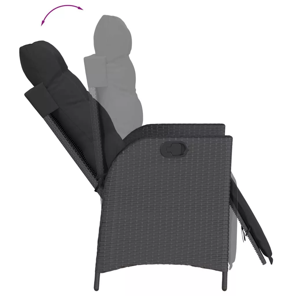 - Állítható háttámla és lábtámasz: Ez a kerti ülőgarnitúra fogantyúval rendelkezik. A háttámlát és a lábtámaszt a fogantyú meghúzásával tetszőleges pozícióba állíthatja, és gyorsan visszahelyezheti eredeti helyzetükbe.