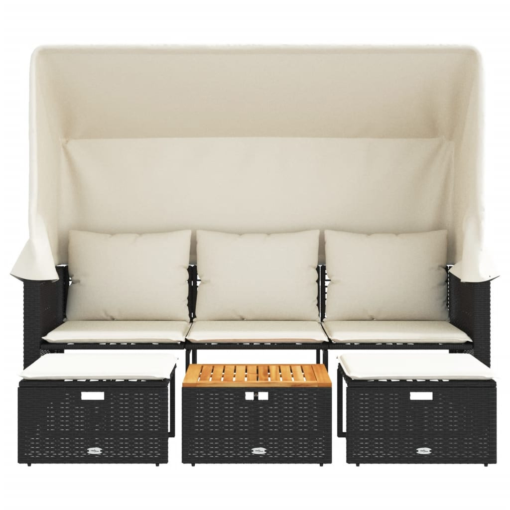 Ez a baldachinnal és zsámolyokkal ellátott, kerti ülőgarnitúra tökéletes kiegészítője lesz kertjének, teraszának vagy udvarának, kényelmes és hívogató teret biztosítva a családdal és a barátokkal való beszélgetéshez, vagy egyszerűen csak pihenéshez a szabadban.