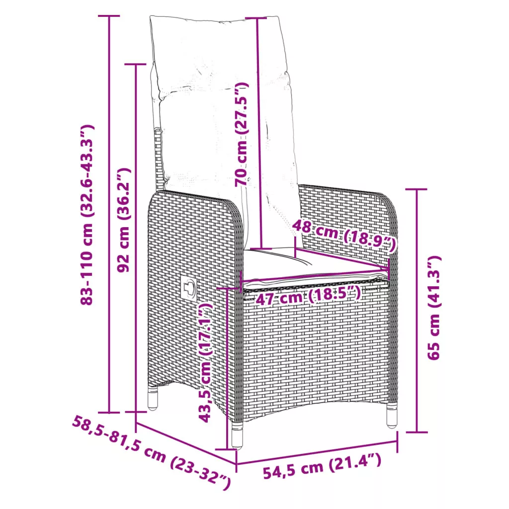 - Állítható háttámla: Ez a kerti szék fogantyúval rendelkezik. A háttámlát a fogantyú meghúzásával tetszőleges pozícióba állíthatja, és gyorsan visszahelyezheti eredeti helyzetébe.