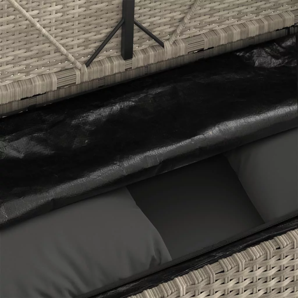 - Tárolási funkció vízálló zsákkal: A kerti bútor tárolóhellyel rendelkezik az ülés alatt, amely egy vízálló zsákkal van kiegészítve a párnák, játékok és egyéb tárgyak tárolására. A belső zsák tépőzáras rögzítőkkel biztonságosan a kültéri bútorhoz rögzíthető a nagyobb stabilitás érdekében.