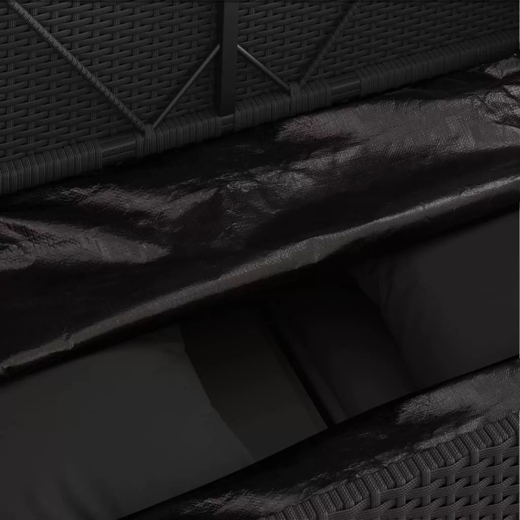 - Tárolási funkció vízálló zsákkal: A kerti bútor tárolóhellyel rendelkezik az ülés alatt, amely egy vízálló zsákkal van kiegészítve a párnák, játékok és egyéb tárgyak tárolására. A belső zsák tépőzáras rögzítőkkel biztonságosan a kültéri bútorhoz rögzíthető a nagyobb stabilitás érdekében.