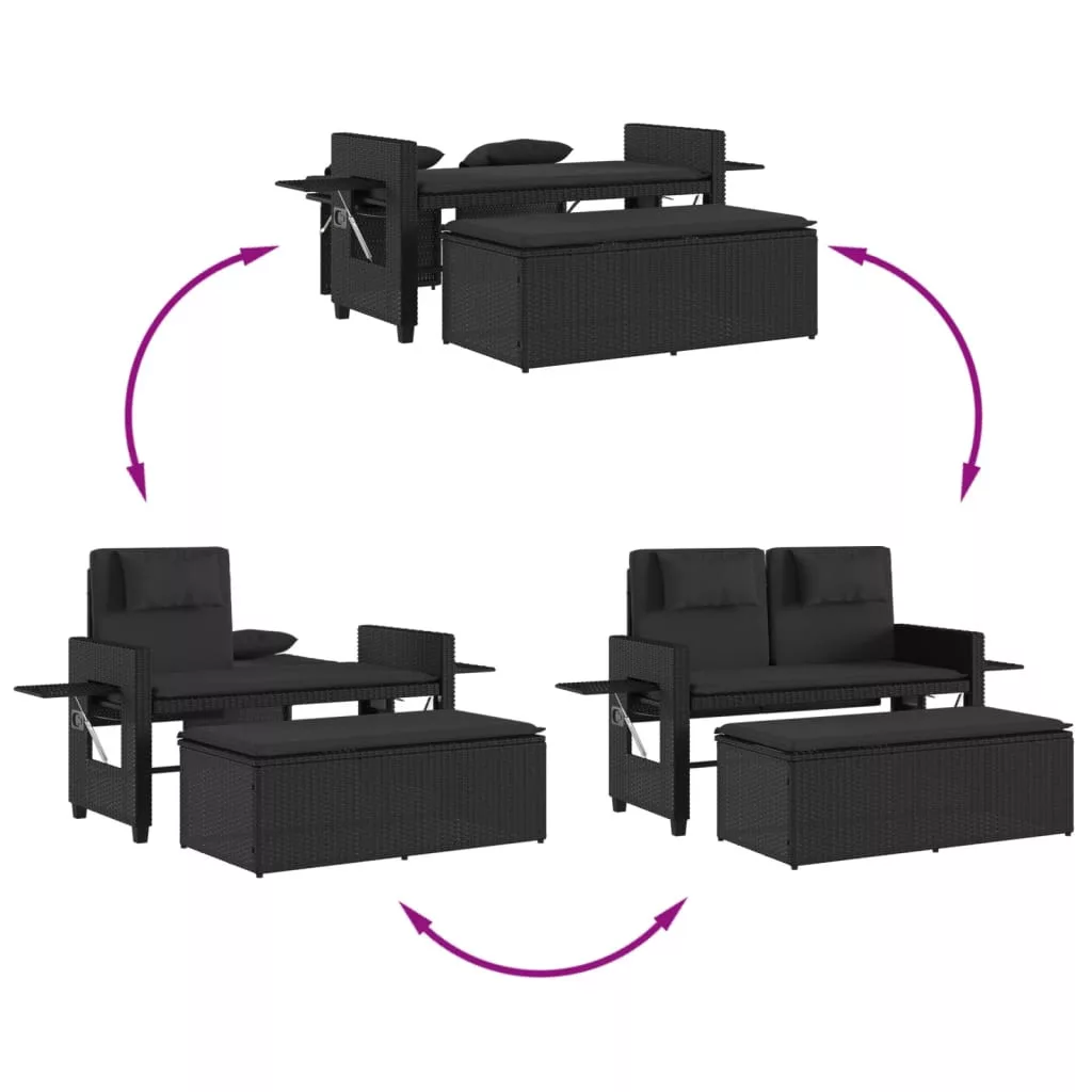 - Sokoldalú funkcionalitás: Ez a kerti bútor 2 személyes padként vagy kanapéként használható. Könnyedén ággyá alakítható, ha hátra dönti a háttámlát és kihúzza a zsámolyt a pad alól. A háttámlák mögötti tartópanelek stabilabbá teszik az ágyat.