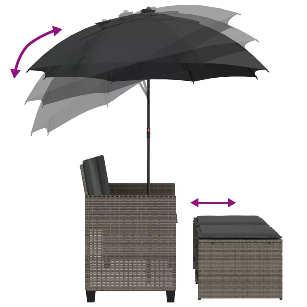 Ez a napernyővel és zsámollyal ellátott kerti kanapé tökéletes kiegészítője lesz kertjének, teraszának vagy udvarának, kényelmes és hívogató teret biztosítva a családdal és a barátokkal való beszélgetéshez, vagy egyszerűen csak pihenéshez a szabadban.