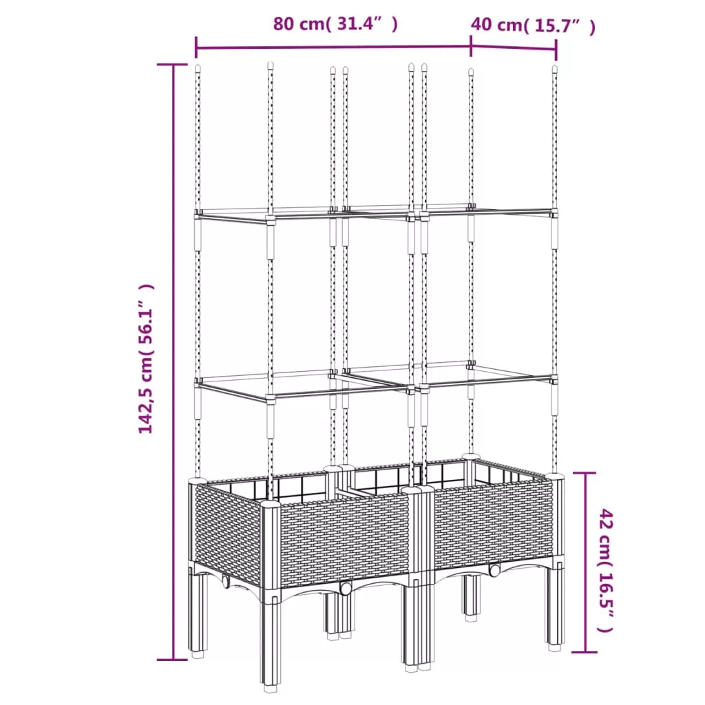 - Praktikus kialakítás: Az ideális alsó réteg segít megtartani a nedvességet, és lehetővé teszi a könnyű vízelvezetést. Emellett a beépített rács nagyszerű támaszt nyújt a kúszónövények, például a paradicsom, a borsó és a rózsa futtatásához.