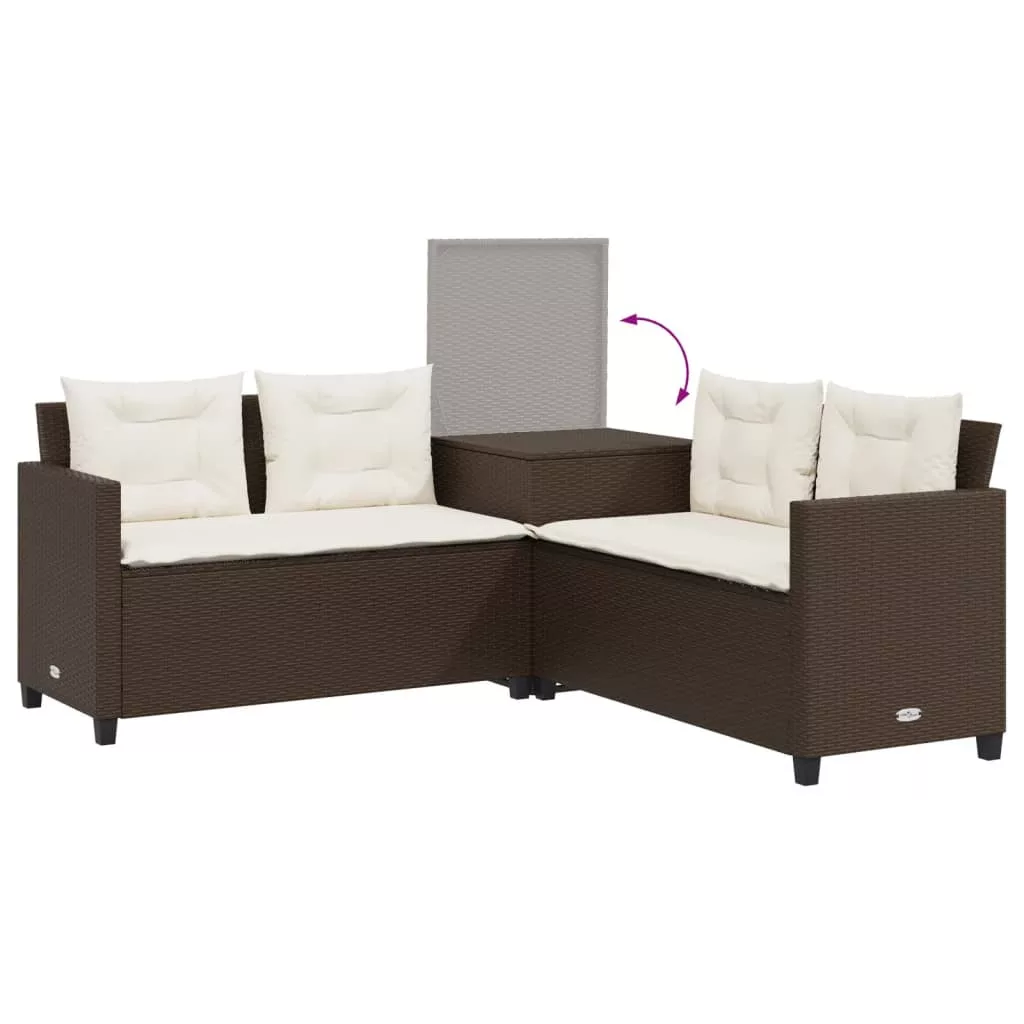 - Tárolási funkció vízálló zsákkal: A kerti kisasztal alatt tárolóhely található, amely egy vízálló zsákkal van kiegészítve a párnák, játékok, és egyéb tárgyak tárolásához. A belső zsák felső huzattal rendelkeznek, és a nagyobb stabilitás érdekében tépőzárral biztonságosan az ülésekhez rögzíthetők.