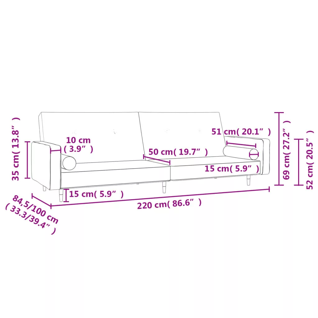 - Teljes mérete: 220 x 84,5 x 69 cm (Ho x Szé x Ma)