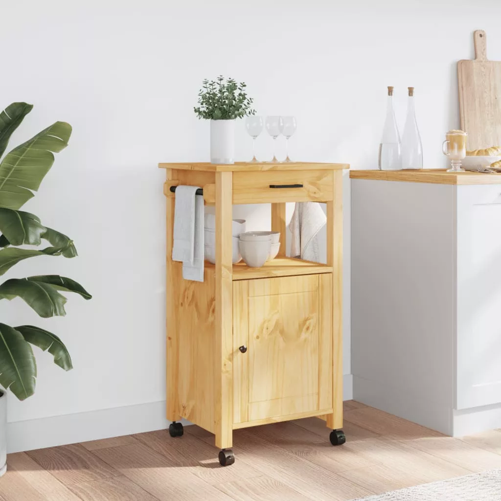 - Strapabíró anyag: A tömör fenyőfa egy gyönyörű természetes anyag. A fenyőfa egyenes erezetű, a csomók pedig jellegzetes, rusztikus megjelenést biztosítanak az anyagnak. A tömör fenyőfából készült konyhai tárolókocsi tartós és robusztus.