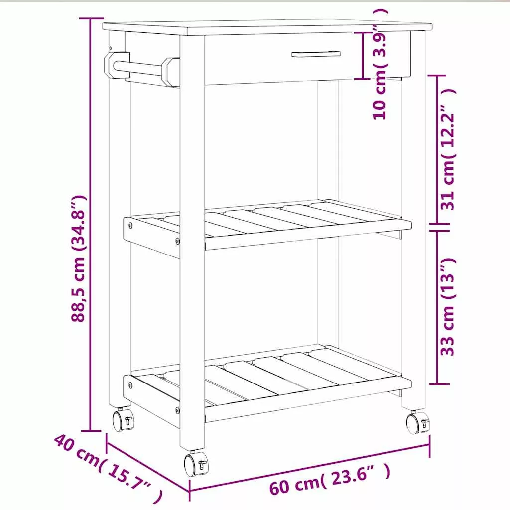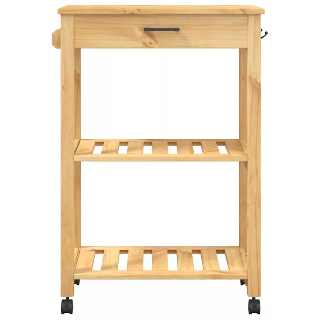 - Strapabíró anyag: A tömör fenyőfa egy gyönyörű természetes anyag. A fenyőfa egyenes erezetű, a csomók pedig jellegzetes, rusztikus megjelenést biztosítanak az anyagnak. A tömör fenyőfából készült konyhai tárolókocsi tartós és robusztus.