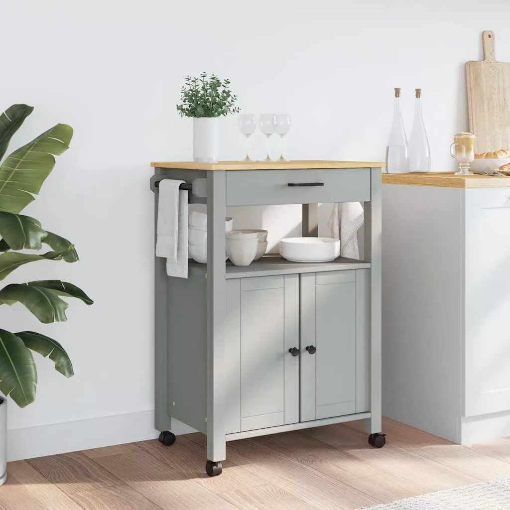 - Strapabíró anyag: A tömör fenyőfa egy gyönyörű természetes anyag. A fenyőfa egyenes erezetű, a csomók pedig jellegzetes, rusztikus megjelenést biztosítanak az anyagnak. A tömör fenyőfából készült konyhai tárolókocsi tartós és robusztus.