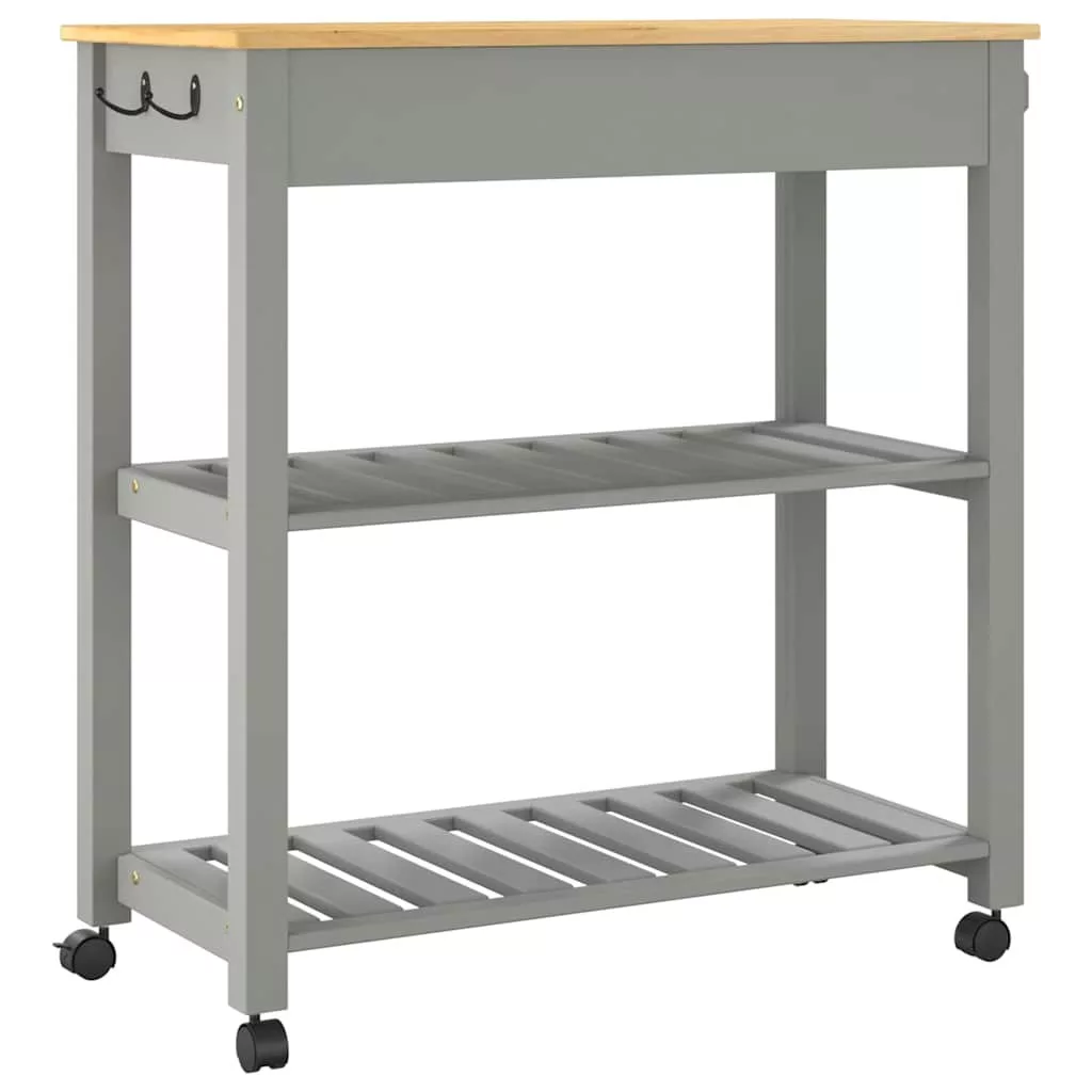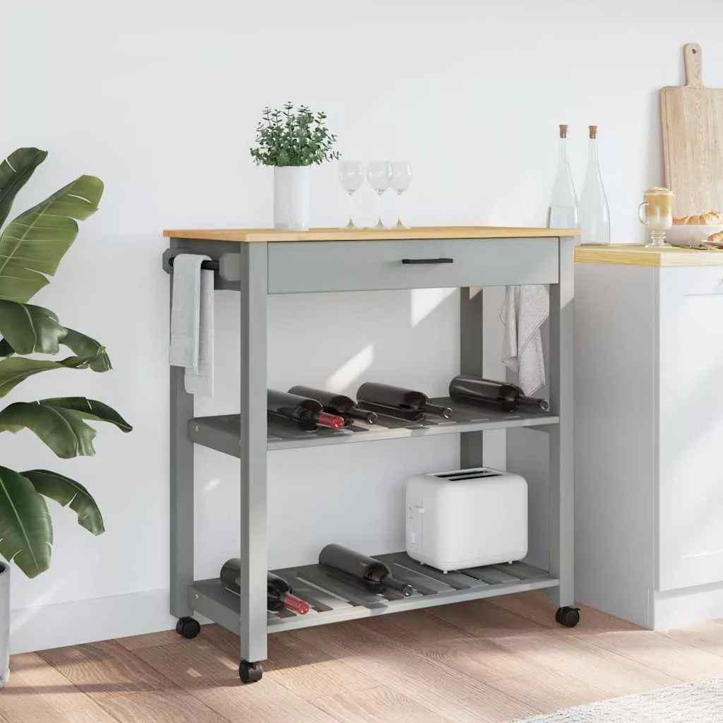 - Strapabíró anyag: A tömör fenyőfa egy gyönyörű természetes anyag. A fenyőfa egyenes erezetű, a csomók pedig jellegzetes, rusztikus megjelenést biztosítanak az anyagnak. A tömör fenyőfából készült konyhai tárolókocsi tartós és robusztus.