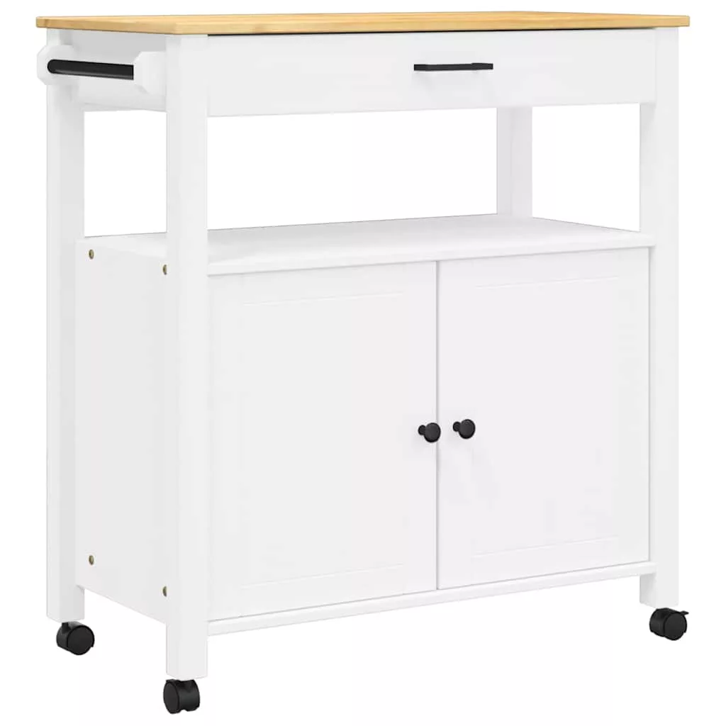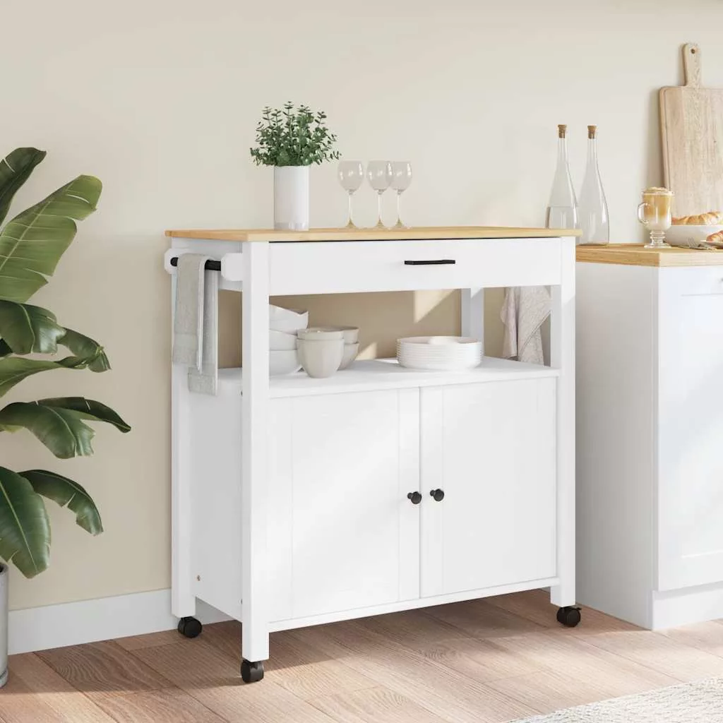- Strapabíró anyag: A tömör fenyőfa egy gyönyörű természetes anyag. A fenyőfa egyenes erezetű, a csomók pedig jellegzetes, rusztikus megjelenést biztosítanak az anyagnak. A tömör fenyőfából készült konyhai tárolókocsi tartós és robusztus.