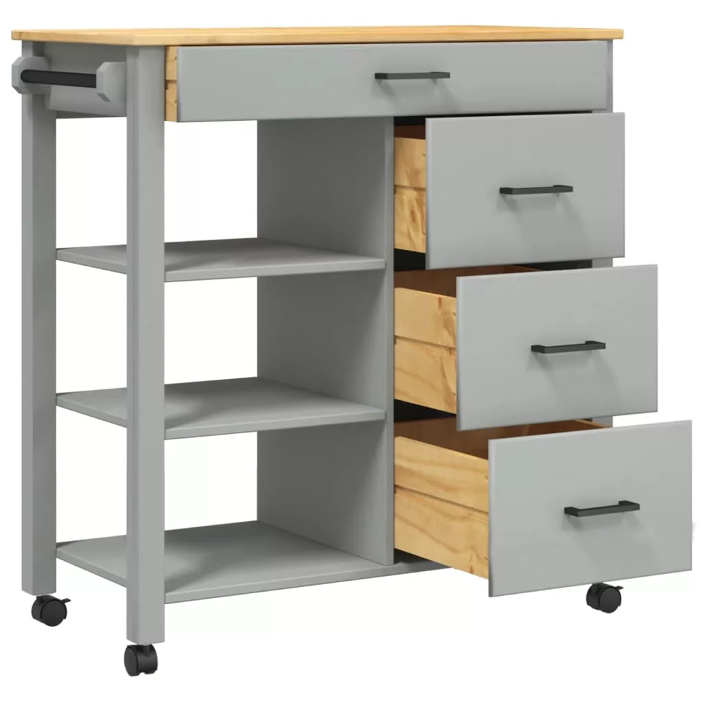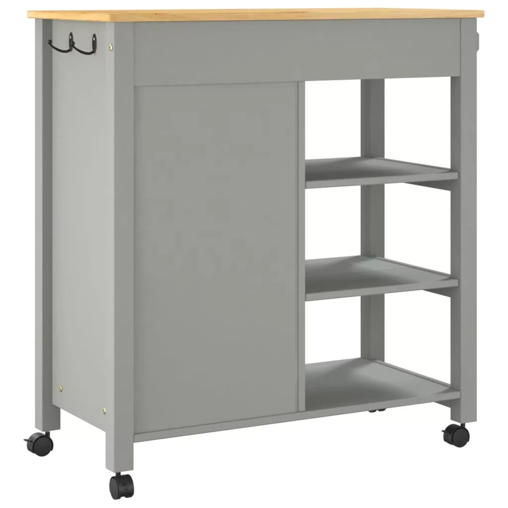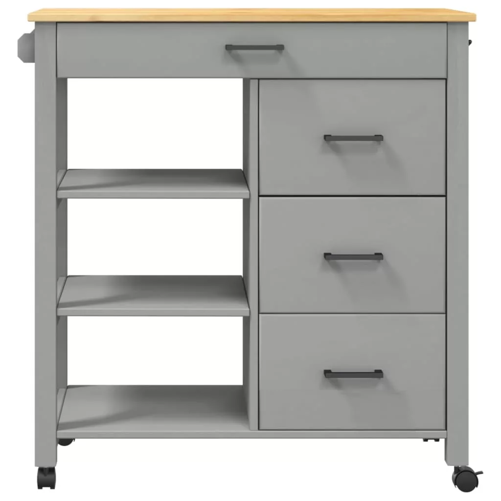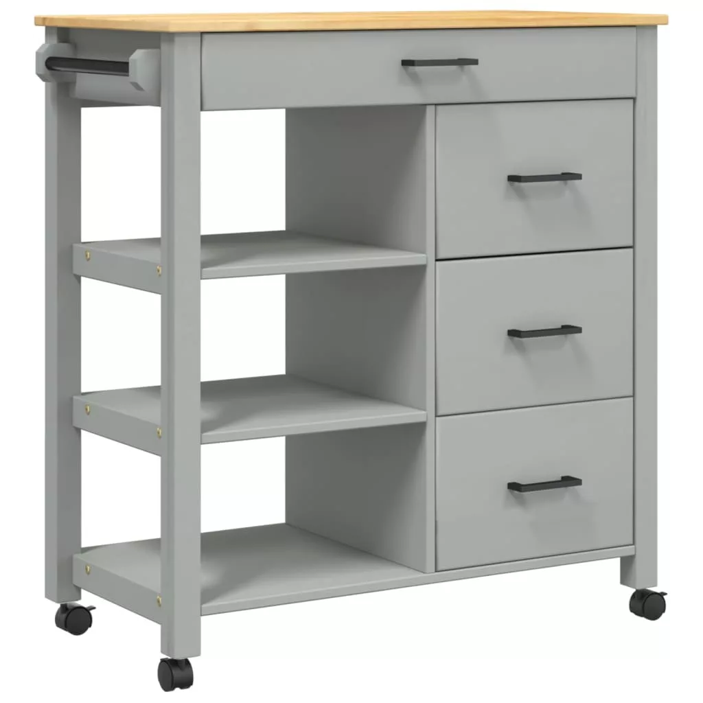 - Strapabíró anyag: A tömör fenyőfa egy gyönyörű természetes anyag. A fenyőfa egyenes erezetű, a csomók pedig jellegzetes, rusztikus megjelenést biztosítanak az anyagnak. A tömör fenyőfából készült konyhai tárolókocsi tartós és robusztus.