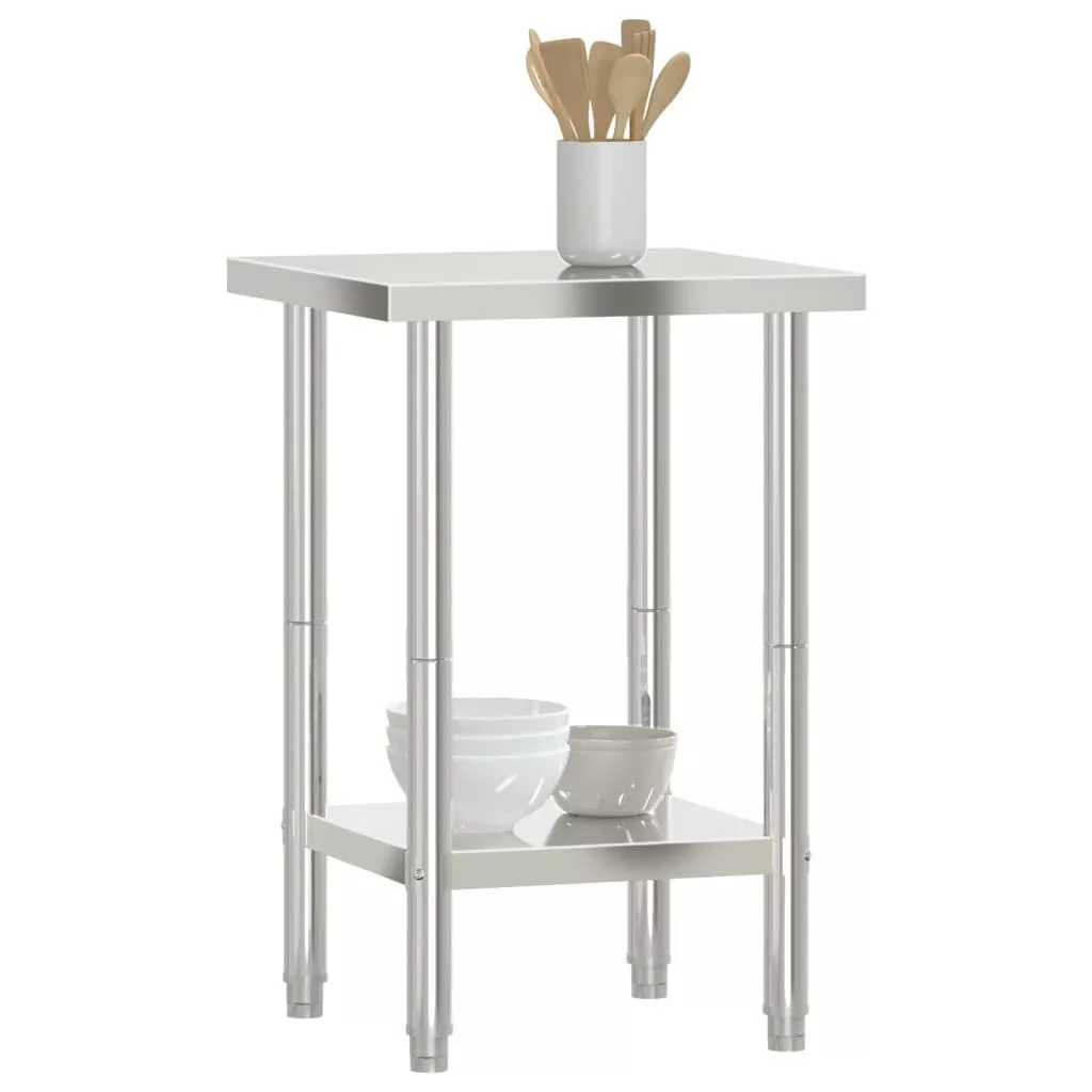 - Tartós és stabil konstrukció: A munkaasztal rozsdamentes acélból készült, amely ellenáll a korróziónak és a rozsdának a több éven át tartó megbízható használatához. A sima felület könnyen tisztítható és karbantartható, így higiénikus ételkészítési területet biztosít.